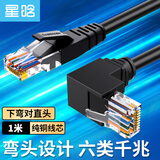 星晗 六类网线千兆 非屏蔽90度弯头网线 CAT6类纯铜网络连接线 POE供电网络跳线8芯 下弯对直头 1米NW61222