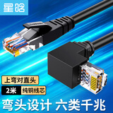 星晗 六类网线千兆 非屏蔽90度弯头网线 CAT6类纯铜网络连接线 POE供电网络跳线8芯 左弯对直头 2米NW61231