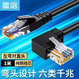 星晗 六类网线千兆 非屏蔽90度弯头网线 CAT6类纯铜网络连接线 POE供电网络跳线8芯 左弯对直头 1米NW61229