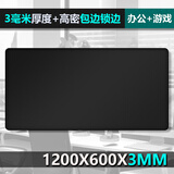 现代翼蛇 1200*600*3mm游戏电竞办公鼠标垫大号 锁边加厚电脑键盘书桌垫 纯黑色