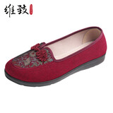 维致单鞋女软底妈妈鞋一脚蹬绣花中式国风老北京布鞋 WZ1044红色36