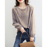 俞兆林韩版时尚简约宽松磨毛衬衫百搭外套翻领格纹上衣女衬衣 Y143C2002