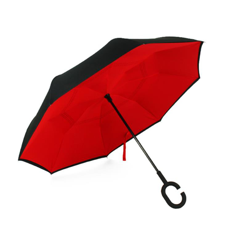 爱车屋 创意双层晴雨反向伞I-3071黑红色