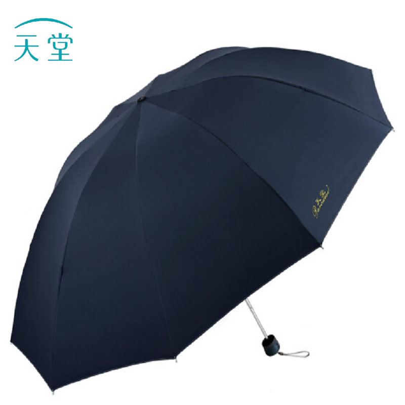 天堂 加大防晒晴雨伞三折十骨加固黑胶33188E藏青色