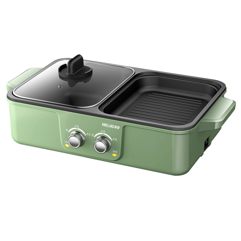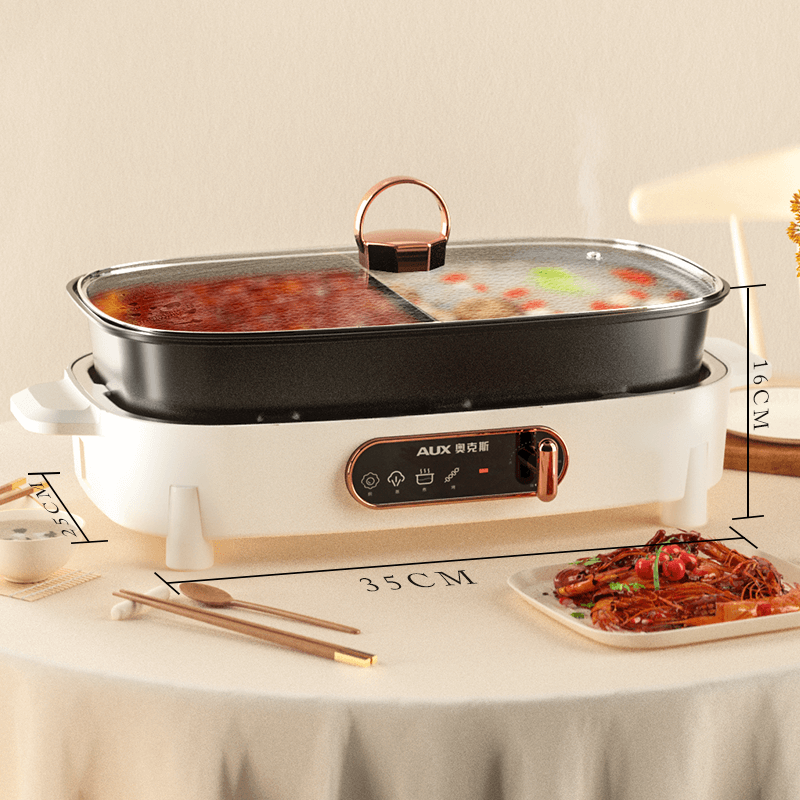 奥克斯(AUX)5L分体多功能鸳鸯料理锅白色 鸳鸯锅+煎烤盘
