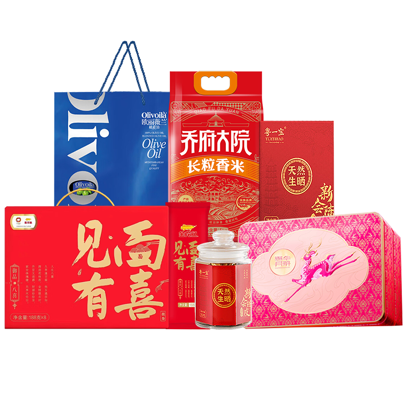 锦华/欧丽薇兰/乔府大院/金龙鱼/粤一宝 月饼粮油挂面陈皮 组合 1000ml+7564g