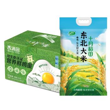 十月稻田/香满园 东北大米鸡蛋组合5kg+30枚