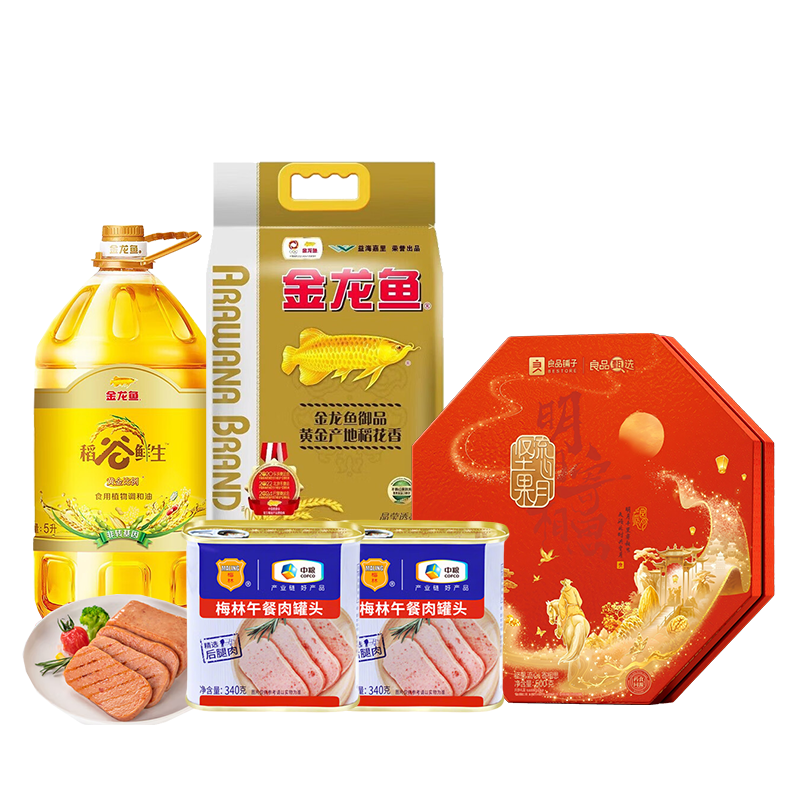 良品铺子/金龙鱼/中粮 月饼粮油午餐肉 组合 5L+6180g