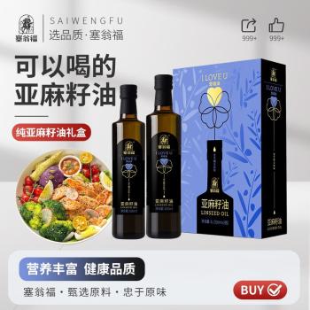 塞翁福 富含α-亚麻酸纯亚麻籽油礼盒(500ml*2) 天蓝包装