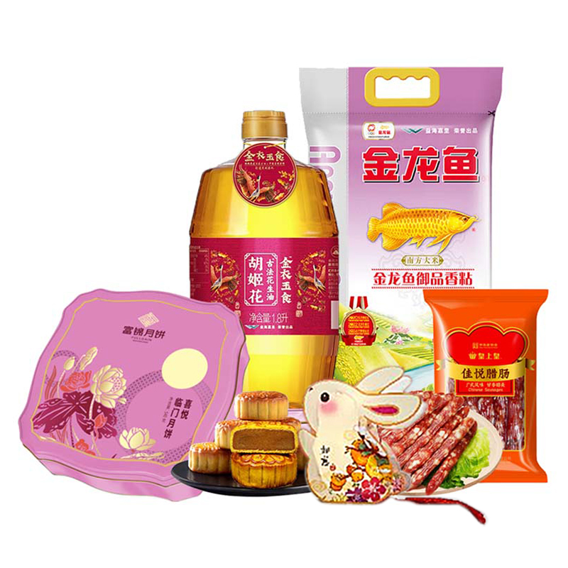 富锦/胡姬花/金龙鱼-月饼粮油腊味明月及福组合5740g+1.8L